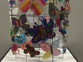 The Queen case is filled with colorful, joy-filled creations, including the centerpiece: A tribute to cats. While we don't know the artist, we do know the questions it makes us ask ourselves: “How many children who perished had pet cats, how many loved to play with their pets?” It's the ordinary experiences of life, like having pets, that make us think of our connection to those that lost their lives. And it's through our common experiences that we can create a world where hope is greater than hate.
